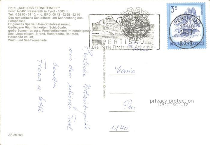 72375693 alte Postkarte Nassereith Hotel Fernsteinsee postalisch gelaufen Erhaltung siehe scans KatCode: 11390334070212