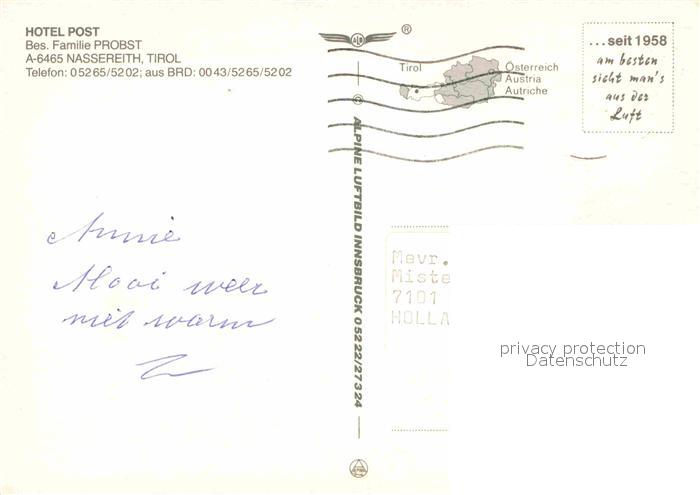 72790908 alte Postkarte Nassereith Hotel Post Gesamtansicht mit Alpenpanorama postalisch gelaufen Erhaltung siehe scans [FriedD77] KatCode: 11390334070212