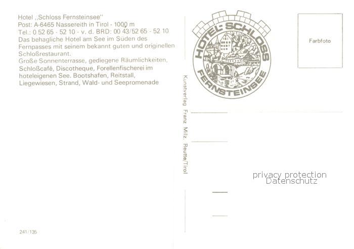73161324 Nassereith Hotel Schloss Fernsteinsee postalisch nicht gelaufen Erhaltung siehe scans [KathaD81] KatCode: 11390334070212