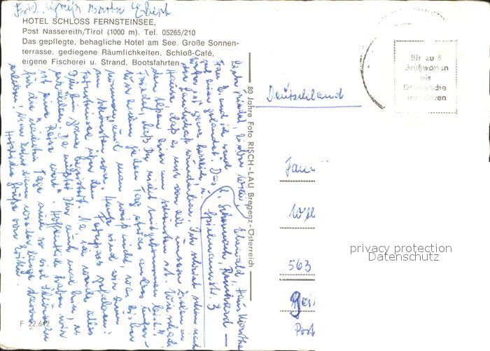 71901834 alte Postkarte Nassereith Hotel Schloss Fernsteinsee postalisch gelaufen Erhaltung siehe scans KatCode: 11390334070212