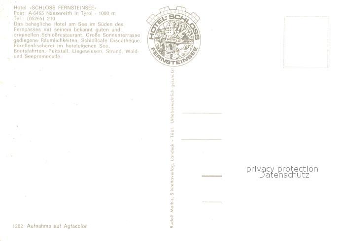 73634420 Nassereith Hotel Schloss Fernsteinsee postalisch nicht gelaufen Erhaltung siehe scans [FriedD77] KatCode: 11390334070212