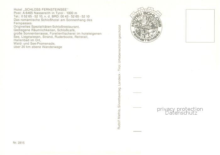 73632829 Nassereith Hotel Schloss Fernsteinsee Gaststube postalisch nicht gelaufen Erhaltung siehe scans [WerneD78] KatCode: 11390334070212