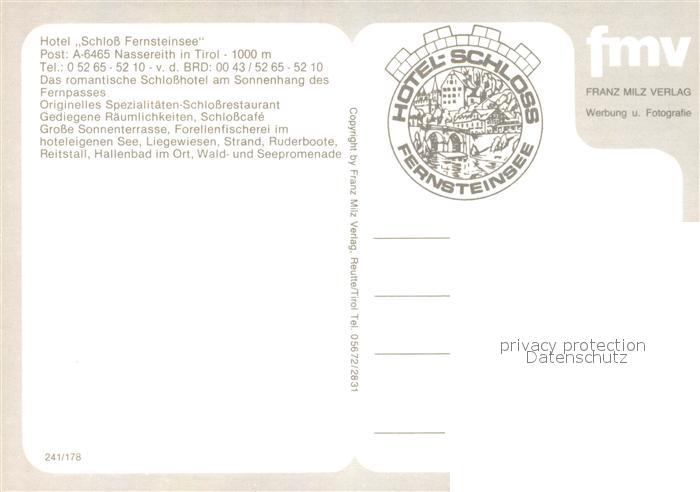 73155394 Nassereith Hotel Schloss Fernsteinsee Gondelteich Viadukt postalisch nicht gelaufen Erhaltung siehe scans [WerneD78] KatCode: 11390334070212