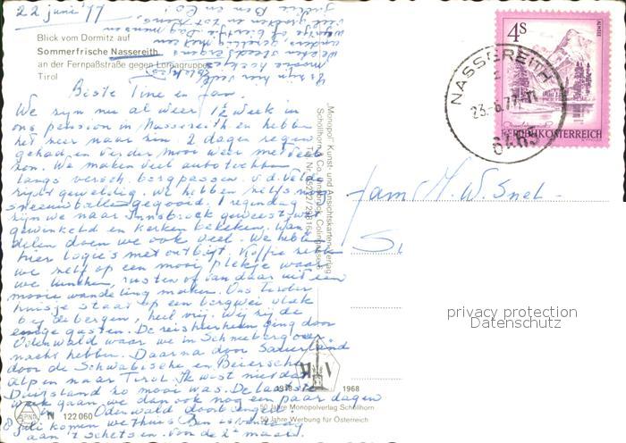 72270622 alte Postkarte Nassereith Panorama Blick vom Dormitz Fernpassstrasse gegen Loreagruppe postalisch gelaufen Erhaltung siehe scans KatCode: 11390334070212