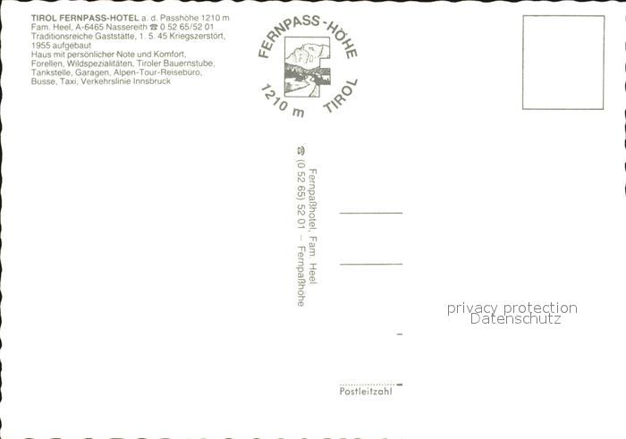 72470324 Nassereith Tirol-Fernpass-Hotel postalisch nicht gelaufen Erhaltung siehe scans KatCode: 11390334070212