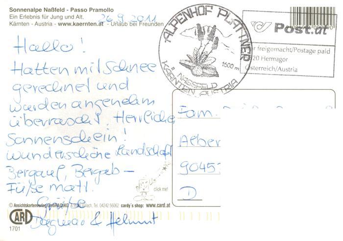 73923585 alte Postkarte Nassfeld Kaernten AT Sonnenalpe Nassfeld Passo Pramollo Panorama postalisch gelaufen Erhaltung siehe scans [FriedD77] KatCode: 11390211020201