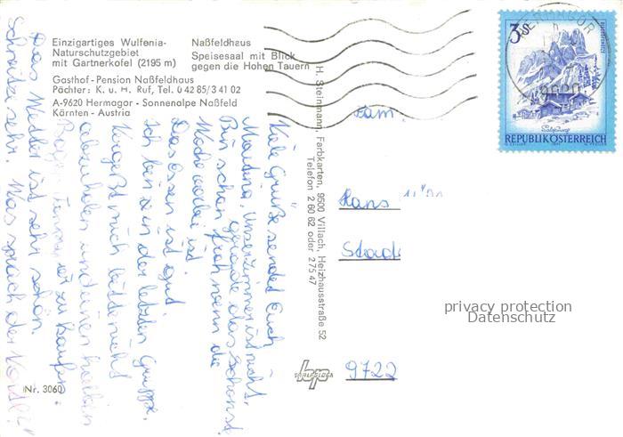 74097528 alte Postkarte Nassfeldhaus Hermagor Kaernten AT Gasthof Pension Nassfeldhaus Panorama postalisch gelaufen Erhaltung siehe scans [WerneD78] KatCode: 11390212020305