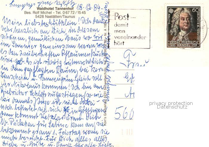 73125312 alte Postkarte Nastaetten Taunus Waldhotel Tannenhof postalisch gelaufen Erhaltung siehe scans [NatalD47] KatCode: 11110007141092