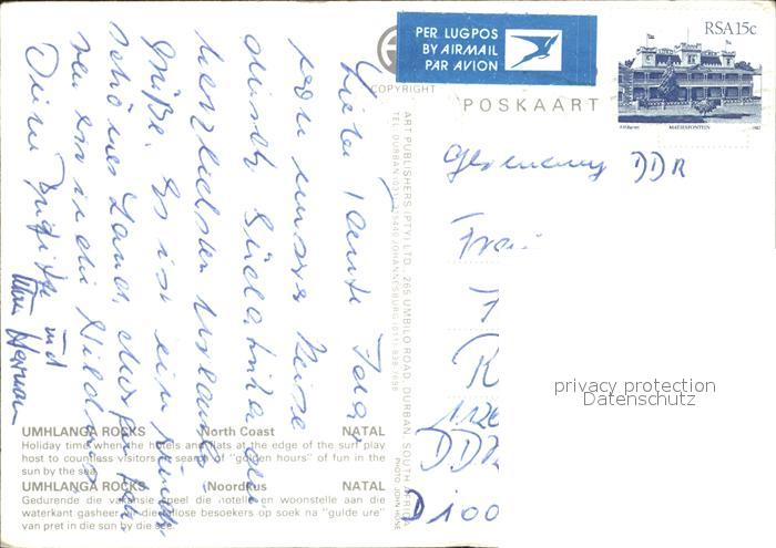 old postcard Natal Cabana Beach Umlanga Rocks postalisch gelaufen Erhaltung siehe scans