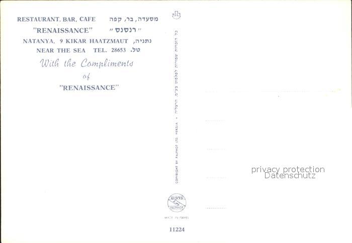 Natanya Restaurant Bar Renaissance postalisch nicht gelaufen Erhaltung siehe scans