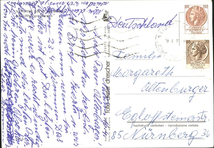 old postcard Naturns postalisch gelaufen Erhaltung siehe scans