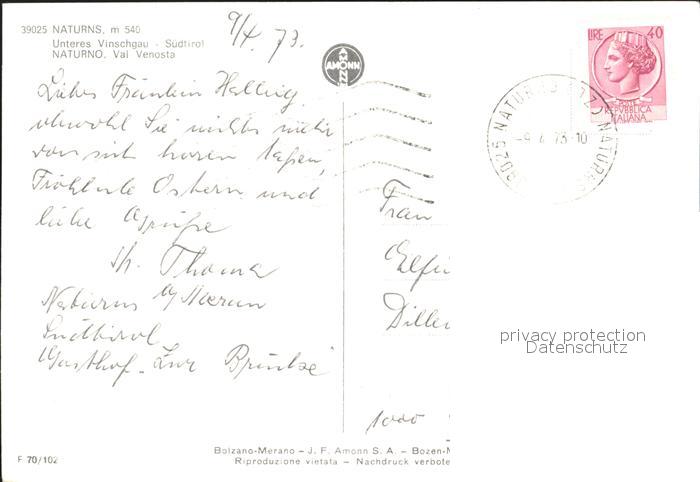 old postcard Naturns Fliegeraufnahme im Vinschgau postalisch gelaufen Erhaltung siehe scans