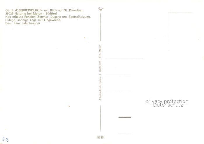 Naturns Gaestehaus Pension garni Oberreindlhof mit Blick auf St. Prokulus Swimming Pool postalisch nicht gelaufen Erhaltung siehe scans [FriedD77]