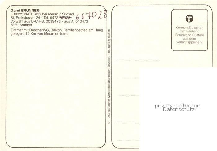 Naturns Garni Brunner Gaststube Gaestezimmer postalisch nicht gelaufen Erhaltung siehe scans [WerneD78]