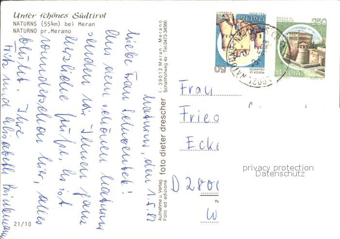 old postcard Naturns Gesamtansicht mit Alpenpanorama postalisch gelaufen Erhaltung siehe scans