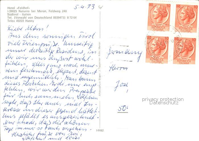 old postcard Naturns Hotel Feldhof postalisch gelaufen Erhaltung siehe scans