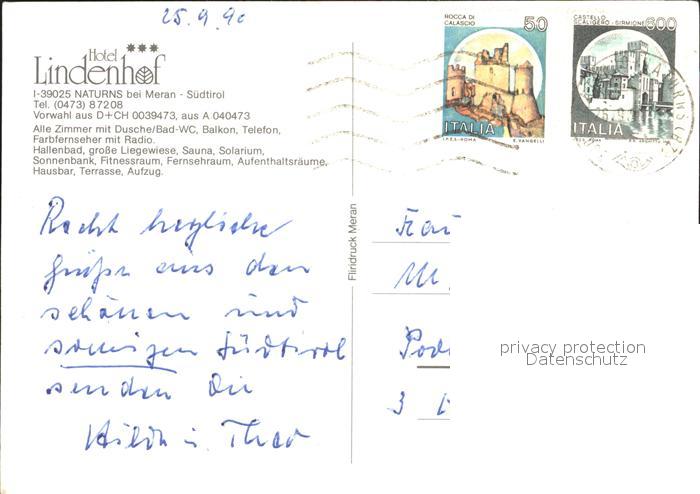 old postcard Naturns Hotel Lindenhof postalisch gelaufen Erhaltung siehe scans