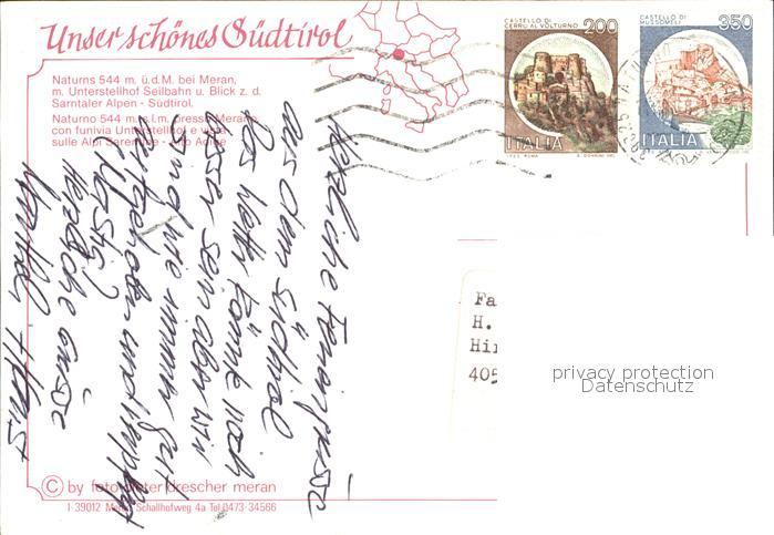 old postcard Naturns mit Seilbahn postalisch gelaufen Erhaltung siehe scans