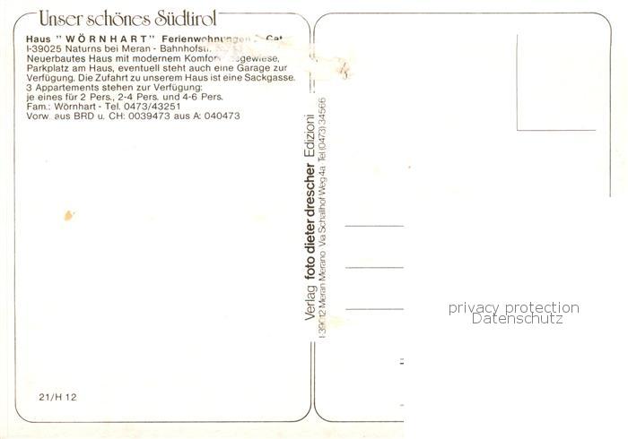 Naturns Naturno Suedtirol IT Haus Woernhart Ferienwohnungen Zimmer Apartement postalisch nicht gelaufen Erhaltung siehe scans [WerneD78]