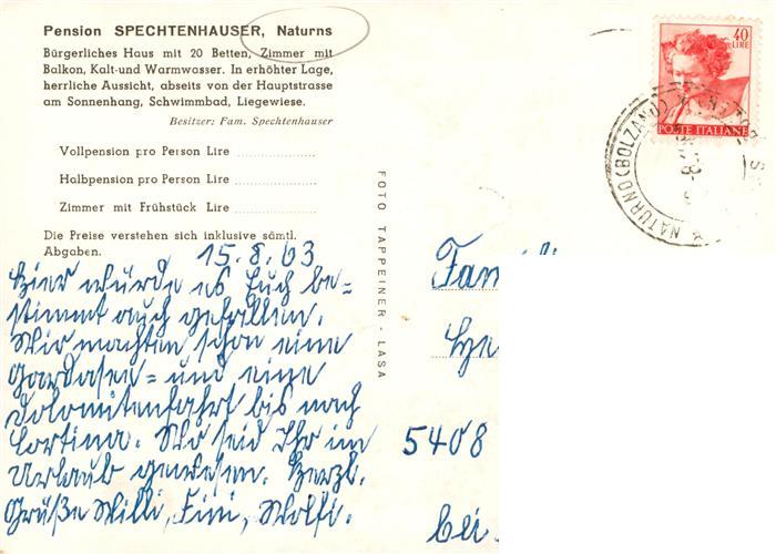 old postcard Naturns Naturno Suedtirol IT Pension Spechtenhauser postalisch gelaufen Erhaltung siehe scans [FriedD77]