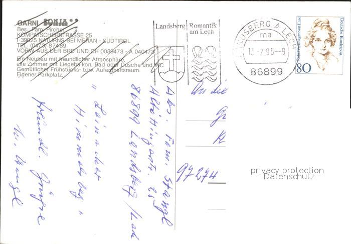 old postcard Naturns Pension Garni Sonja postalisch gelaufen Erhaltung siehe scans