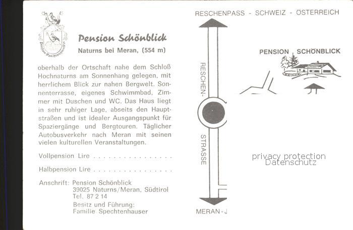 Naturns Pension Schoenblick Schloss Hochnaturns postalisch nicht gelaufen Werbekarte (keine Postkarte) Erhaltung siehe scans