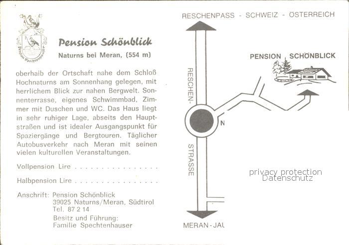 Naturns Pension Schoenblick postalisch nicht gelaufen Werbekarte (keine Postkarte) Erhaltung siehe scans