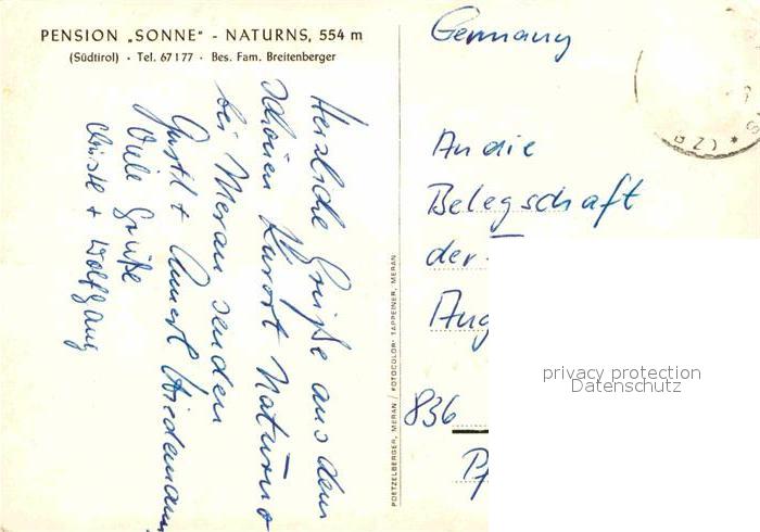 12776669 Naturns Pension Sonne Gaststube Garten Schwimmbad KatCode 11240