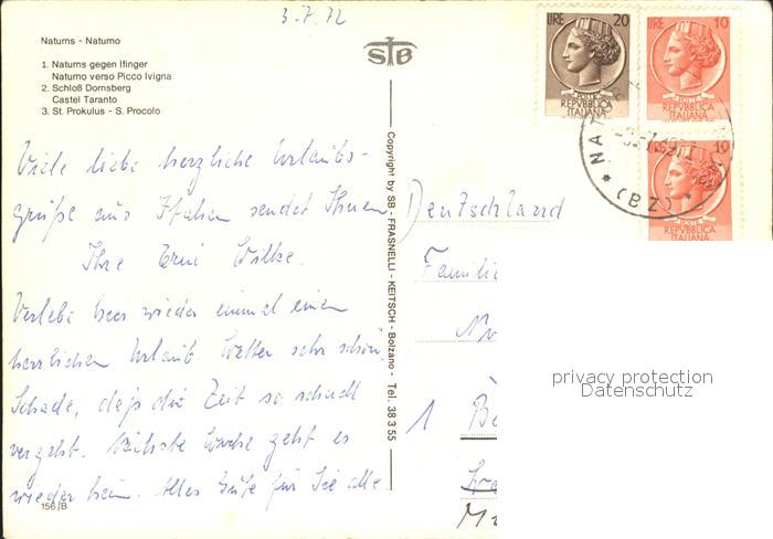 old postcard Naturns Schloss Domsberg St. Prokulus postalisch gelaufen Erhaltung siehe scans