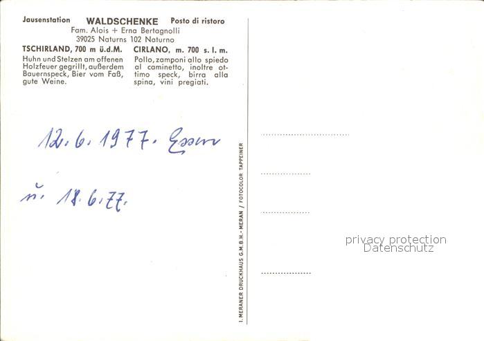Naturns Waldschenke Tschirland Naturns Cirlano Naturno postalisch nicht gelaufen Erhaltung siehe scans