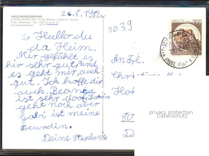 old postcard Natz Brixen Suedtirol Haus Birkenbrunn Swimmingpool Panorama postalisch gelaufen Erhaltung siehe scans
