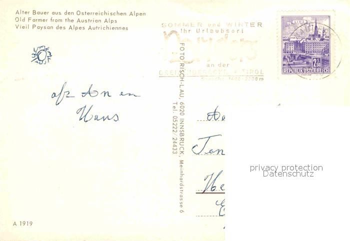 72901782 alte Postkarte Nauders Tirol Alter Bauer postalisch gelaufen Erhaltung siehe scans [AndreD76] KatCode: 11390334070615