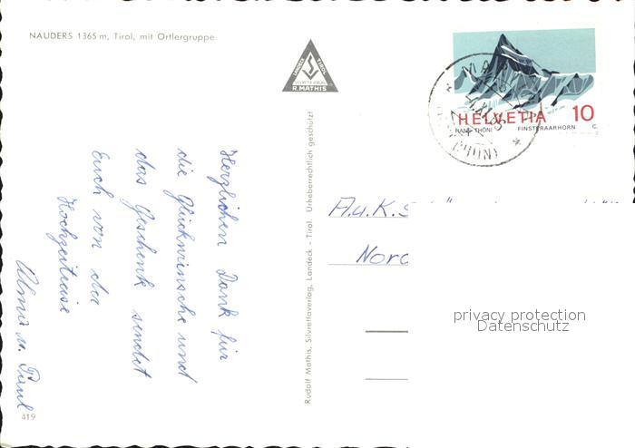 72555678 alte Postkarte Nauders Tirol Gesamtansicht postalisch gelaufen Erhaltung siehe scans [AndreD76] KatCode: 11390334070615