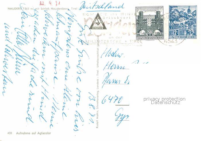 72903616 alte Postkarte Nauders Tirol mit Schloss Naudersberg postalisch gelaufen Erhaltung siehe scans [FriedD77] KatCode: 11390334070615