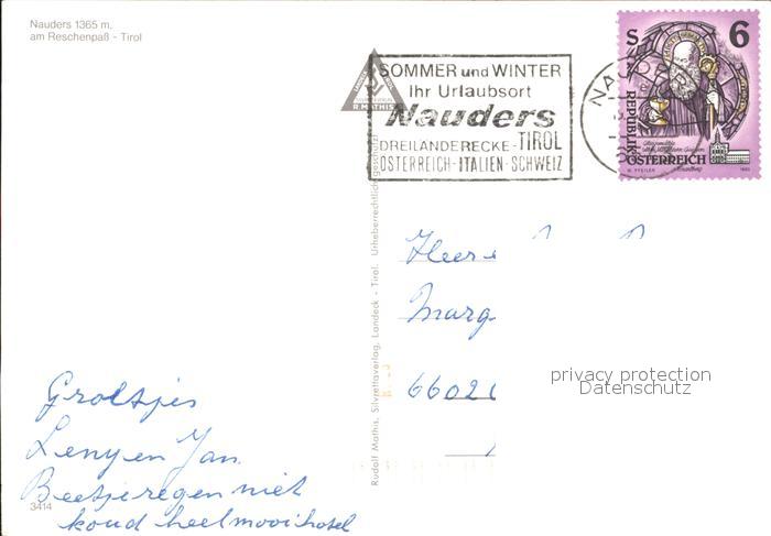 72254228 alte Postkarte Nauders Tirol Ortsansicht mit Kirche am Reschenpass postalisch gelaufen Erhaltung siehe scans KatCode: 11390334070615