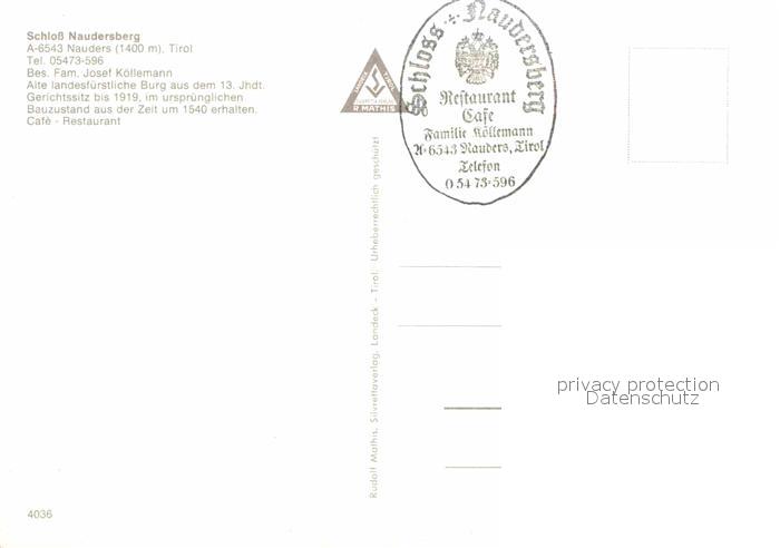 72668917 Nauders Tirol Restaurant Cafe Naudersberg Schloss postalisch nicht gelaufen Erhaltung siehe scans [FriedD77] KatCode: 11390334070615