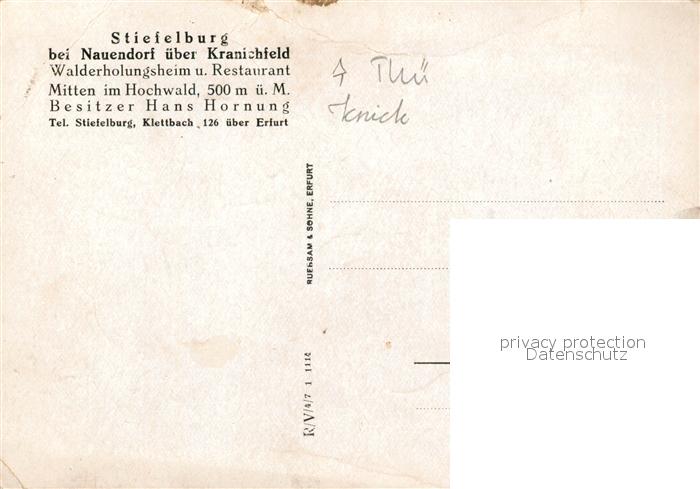 43019861 Nauendorf Kranichfeld Stiefelburg Walderholungsheim Restaurant postalisch nicht gelaufen Erhaltung siehe scans [FriedD77] KatCode: 11110016071059