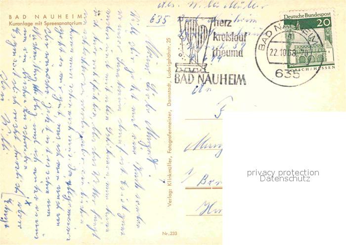 72917247 alte Postkarte Nauheim Bad Kuranlage Spreesanatorium postalisch gelaufen Erhaltung siehe scans [KathaD81] KatCode: 11110006440002