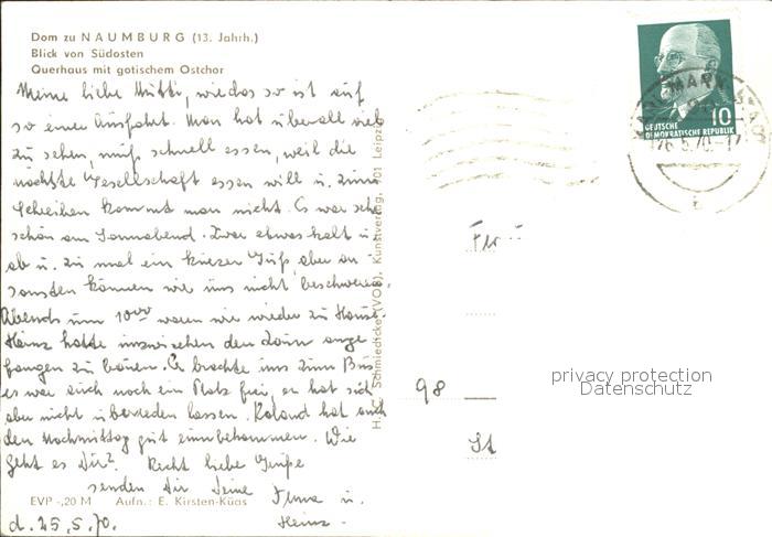 72335688 alte Postkarte Naumburg Saale Dom Querhaus mit gotischem Ostchor postalisch gelaufen Erhaltung siehe scans KatCode: 11110015084355