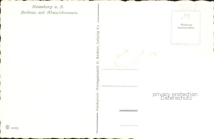 72167349 Naumburg Saale Rathaus mit Wenzelsbrunnen postalisch nicht gelaufen Erhaltung siehe scans KatCode: 11110015084355