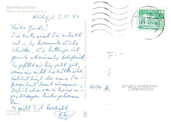 73030015 alte Postkarte Naumburg Saale Rathaus Wilhelm Pieck Platz postalisch gelaufen Erhaltung siehe scans [KathaD81] KatCode: 11110015084355