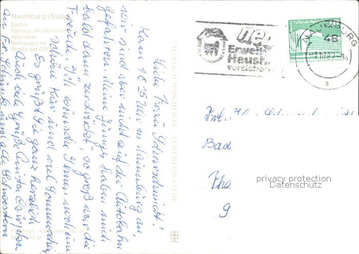 72370885 alte Postkarte Naumburg Saale Salztor Rathaus Holzmarkt Strasse der DSF postalisch gelaufen Erhaltung siehe scans KatCode: 11110015084355
