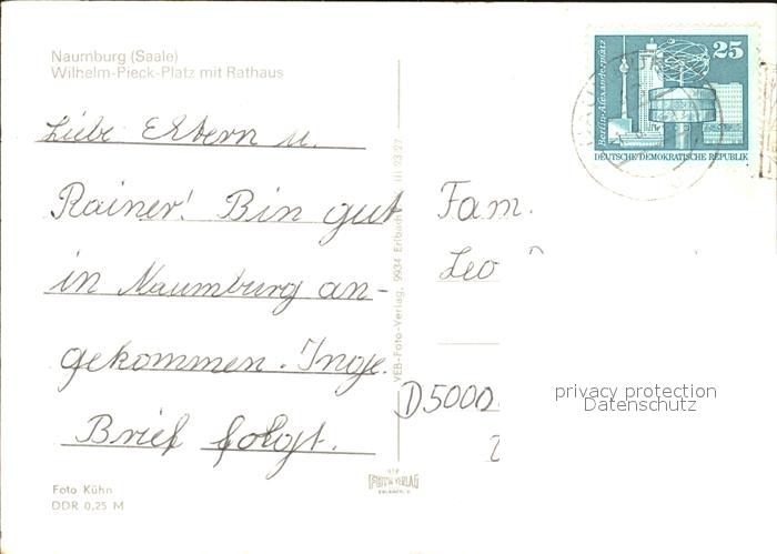 alte Postkarte Naumburg Saale Wilhelm Pieck Platz mit Rathaus postalisch gelaufen Erhaltung siehe scans