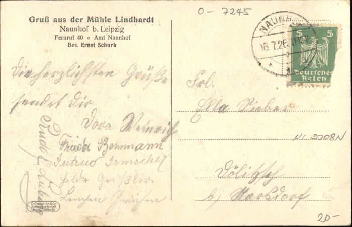 30727458 alte Postkarte Naunhof Leipzig Hotel Muehle Lindhardt postalisch gelaufen KatCode: 11110014383220