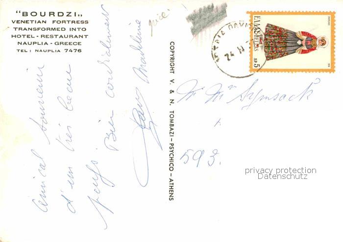 old postcard Nauplia Nauplion Bourdzi Venetian Fortress postalisch gelaufen Erhaltung siehe scans [WerneD78]