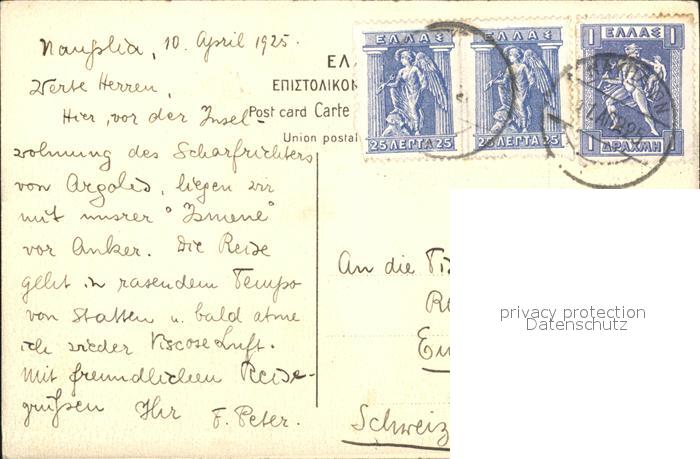 old postcard Nauplia Nauplion Burgi Island Mountains of Argoli postalisch gelaufen