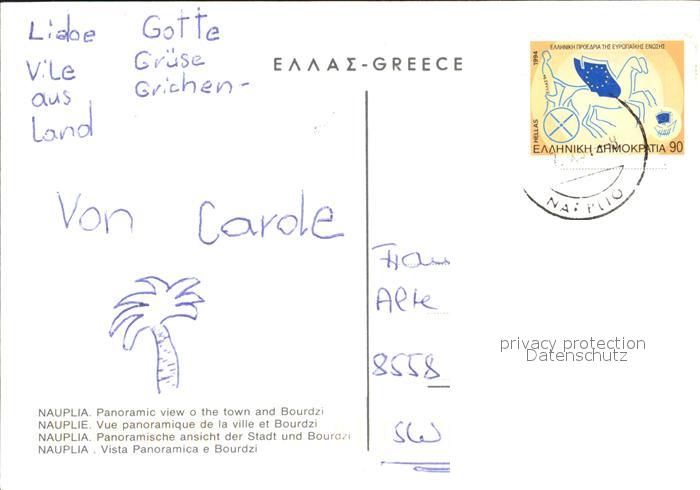 old postcard Nauplia Nauplion Wasserburg Ortsansichten postalisch gelaufen Erhaltung siehe scans
