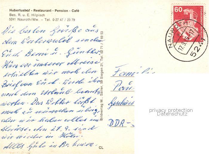 73165401 alte Postkarte Nauroth Westerwald Hubertushof Restaurant Pension Cafe postalisch gelaufen Erhaltung siehe scans [KathaD81] KatCode: 11110007132073