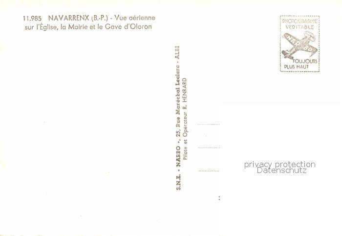 12809523 Navarrenx Fliegeraufnahme Eglise Mairie et le Gave d Oloron postalisch nicht gelaufen Erhaltung siehe scans [NatalD47] KatCode: 11170064264416