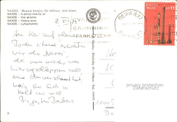 old postcard Naxos Fliegeraufnahme mit Hafen postalisch gelaufen Erhaltung siehe scans [LiesaD40]